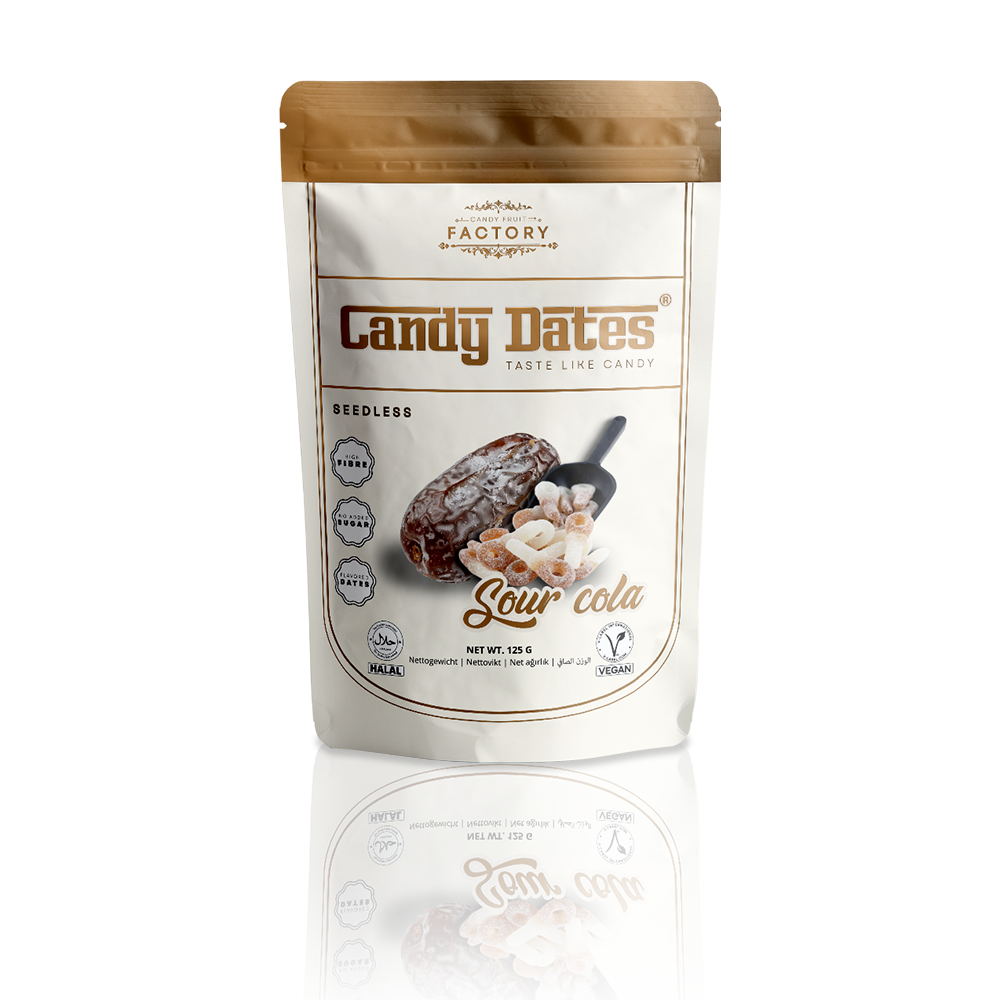 Sauer, süß und einfach unverwechselbar: Unsere Sorte Sour Cola verbindet die natürliche Süße der Dattel mit dem spritzig-erfrischenden Geschmack von Cola und einer feinen, sauren Note. Ohne raffinierten Zucker – aber mit dem vollen Kick für echte Naschfans. Frech. Fruchtig. Erfrischend anders. Candy Dates Sour Cola - Der süß-saure Klassiker, neu gedacht.